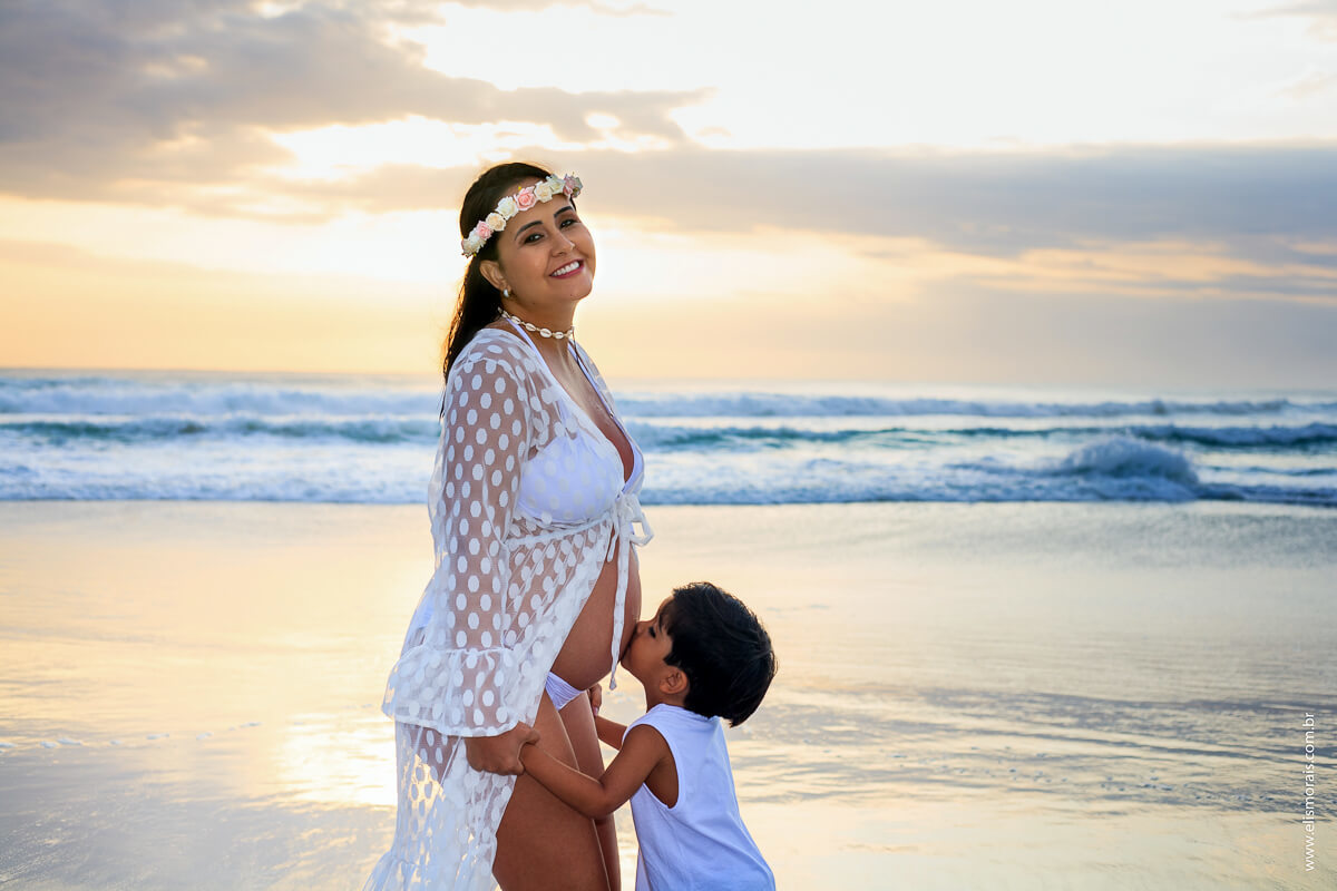 Ensaio fotográfico gestante da mamãe Lorena e família, realizado na Praia do Forte em Cabo Frio e Praia Grande em Arraial do Cabo - RJ
